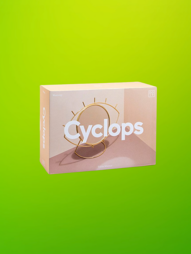 Contemporary and stylish table mirror, shaped as a graphic eye with a golden gilt and removable base for an easy make-up momento.