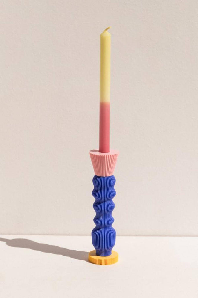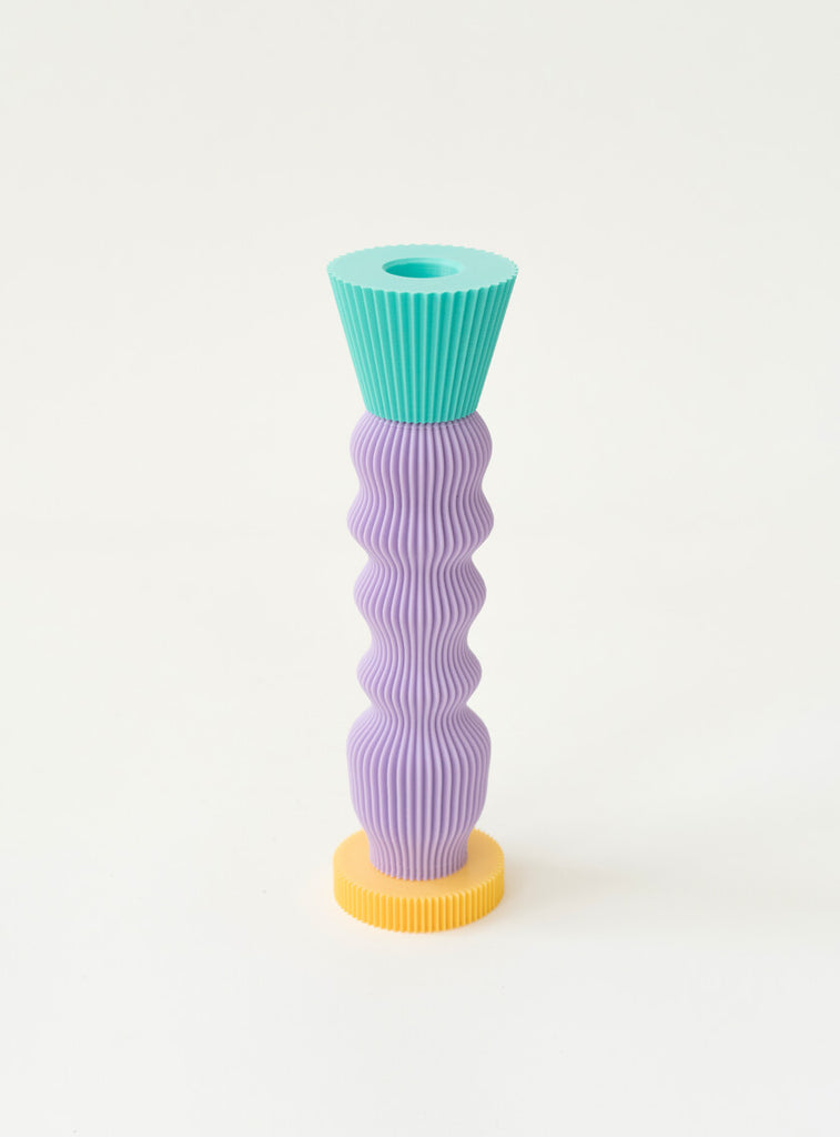 A candleholder with a very graphic, baroque shape. Can be used on both ends.